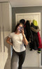 Lovely fabric on the t-shirt! I like that it is slightly loose and cropped, fits well with workout leggings and high-waisted pants🤩 I have this in size L