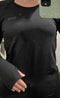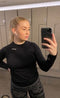 This long-sleeve is a favorite. Fantastic fit, you really feel good in it. Comfortable material to train in, and I love that it has a hole for the thumb! Definitely a must at the gym, I will be ordering more!!