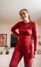 Comfy and light long-sleeve I've been looking for to give myself a sense of soft comfort after exhausting workout. Deep cherry-red makes a boost for mood. Also great for traveling :) Thank you!